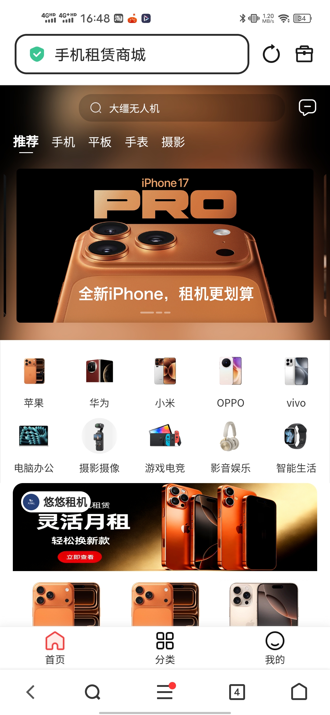 悠悠租机,手机租机,全新无监管机,审核宽松不查征信,网白可入好批易下。