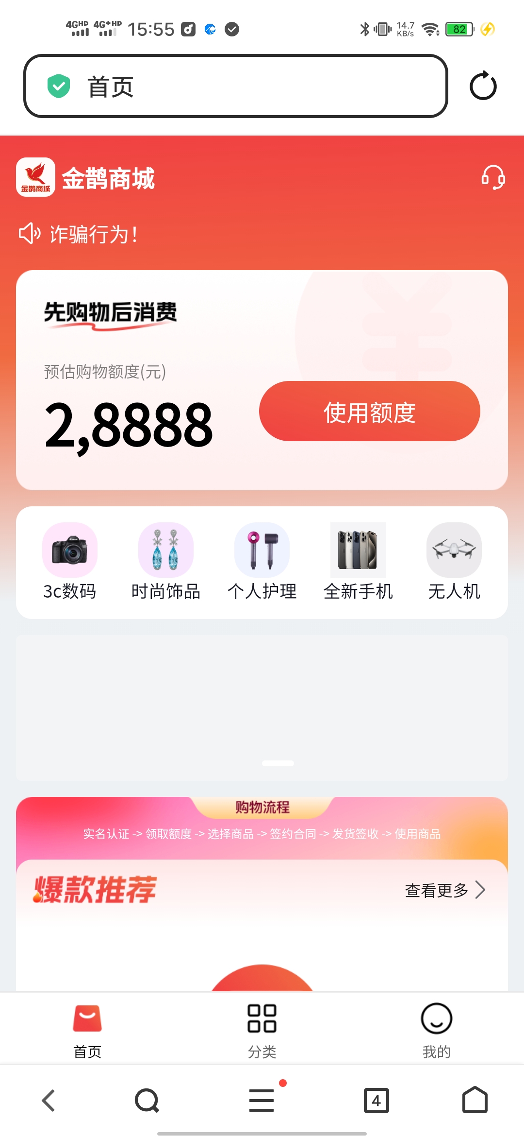 金鹊商城,手机实物商城,0首付支持转寄,审核快速好批易下。