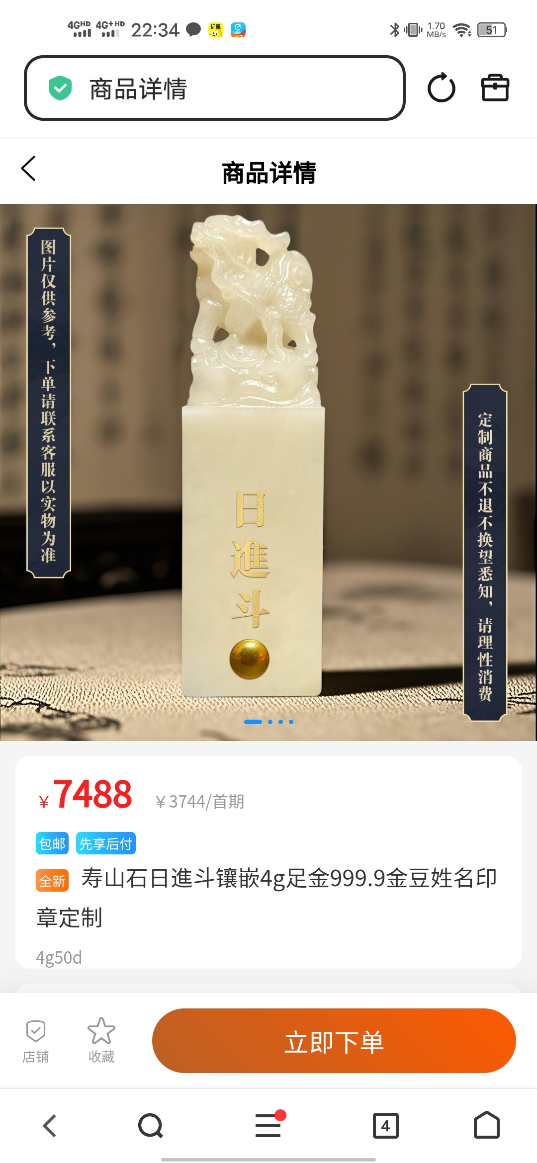 1、商品规格:黄金4g