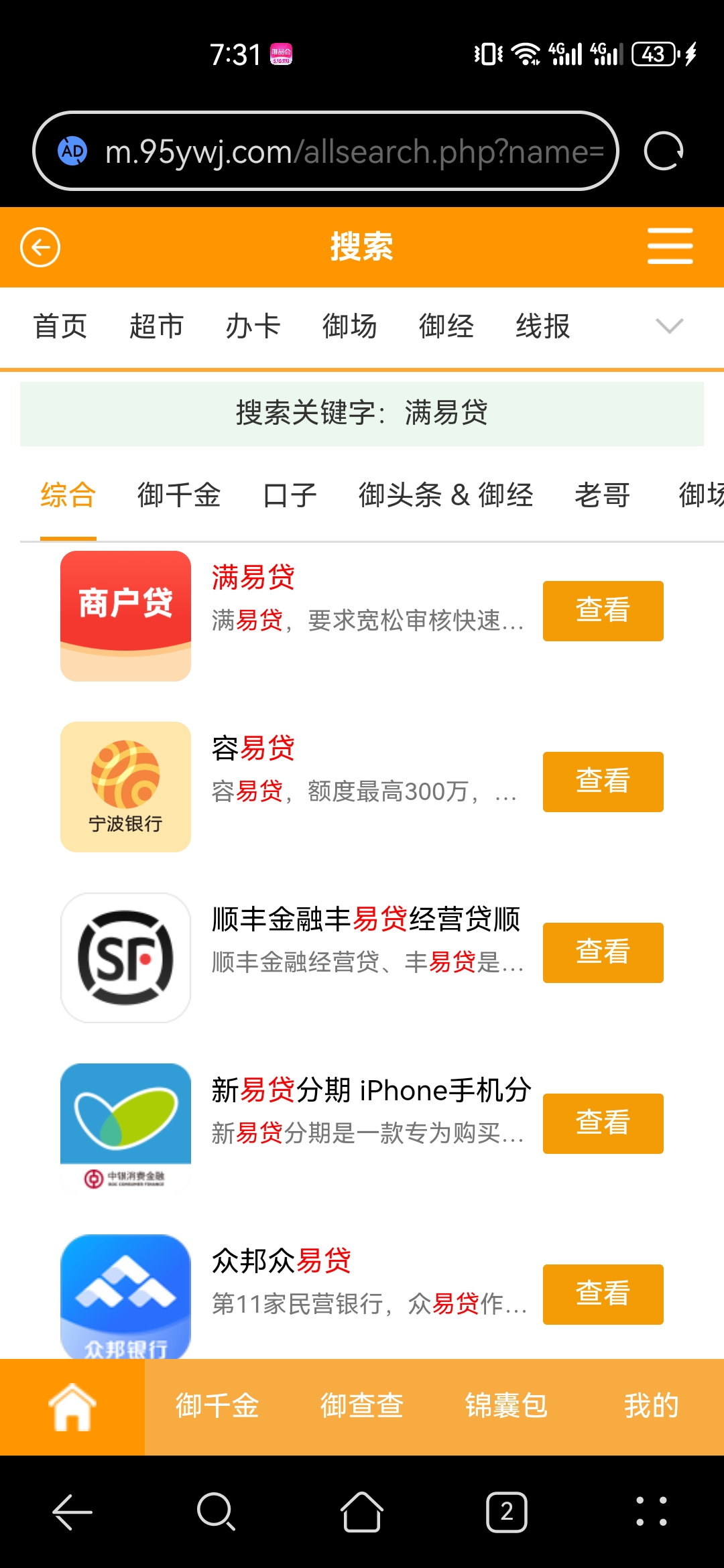 御万金口子商店顶部搜索“满易贷”