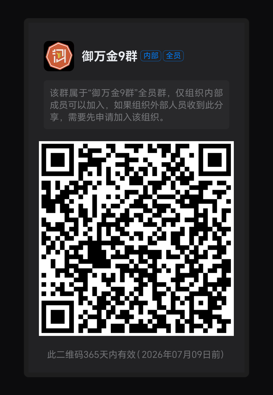 手机下载钉钉,各大应用商店都有下载。扫描下面二维码加入御万金9群。一起交流上岸之路,下款口子。 御万金老哥出手邀请你加入钉钉群聊御万金9群,点击进入查看详情